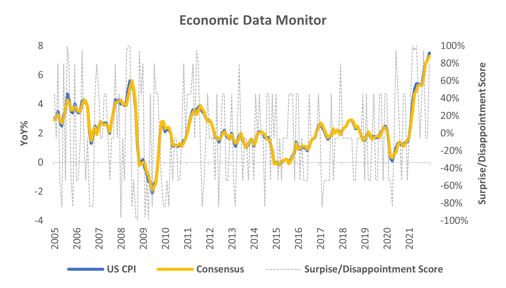 Last week was pretty light on economic data but jam-packed with market-moving events. The biggest shift in markets happened following US CPI on Thursday, with US CPI coming in at 7.5%, the highest level in 40 years! Markets quickly moved to price in hikes by the Federal Reserve in response to this, pricing in 6.5 hikes this year! In other news, the ECB began to pivot on its stance regarding interest rates, suggesting we could see the first ECB rate hike in decades. In our view, Central Banks are now in a race to tighten their respective financial conditions, however, we think markets may have gone too far, too fast.